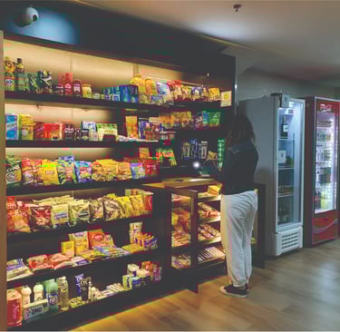 A comodidade de ter a sua disposição uma mini mercado com total segurança e funcionando 24h por dia, não haverá necessidade de sair do condomínio para comprar o item que desejar.